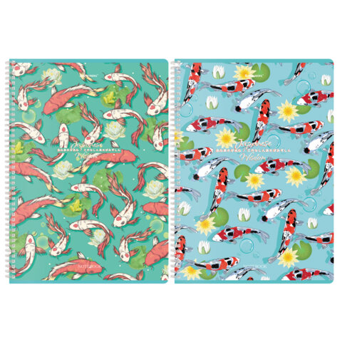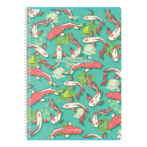 Тетрадь А4, 96 л., BRAUBERG, гребень, клетка, TWIN-лак, "Карпы Кои" (микс в спайке), 405313