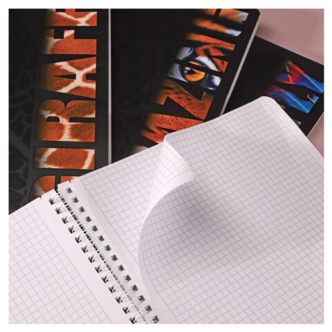 Тетрадь А4 96 л., HATBER, гребень, клетка, матовая ламинация, 3D-лак, "Animals print" (микс), 085842, 96Т4лолВ1гр