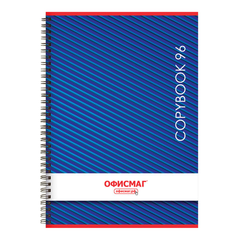 Тетрадь А4, 96 л., ОФИСМАГ, гребень, клетка, обложка картон, МОНОХРОМ, 402793