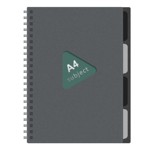 Тетрадь обложка пластик, А4 80 л., гребень, 4 разделителя, клетка, BRAUBERG, серый, 405365