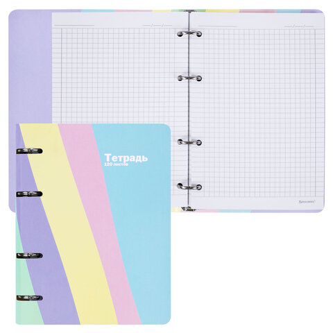 Тетрадь на кольцах А5 160х212 мм, 120 л., картон, матовая ламинация, клетка, BRAUBERG, кросс-серия PASTEL, 405197