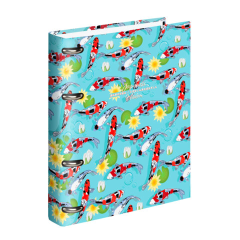 Тетрадь на кольцах А5 160х212 мм, 120 листов, картон, выборочный лак, клетка, BRAUBERG, "Карпы Кои", 404730
