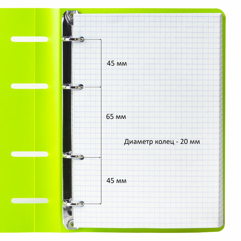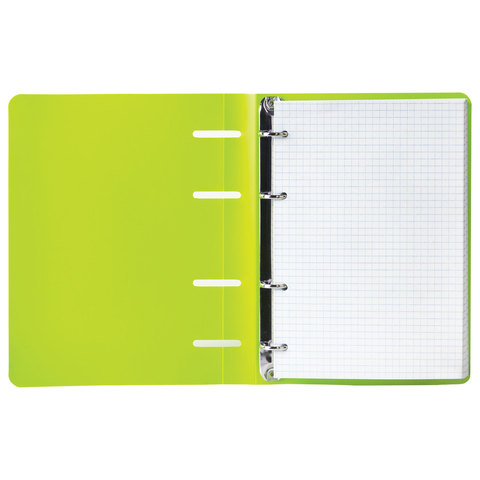Тетрадь на кольцах BRAUBERG с пластиковой обложкой яркого и насыщенного салатового цвета станет незаменимым помощником для учебы и работы.