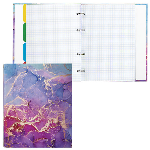 Тетрадь на кольцах А5 (175х215 мм), 120 листов, твердый картон, клетка, с разделителями, BRAUBERG, Marble, 404086