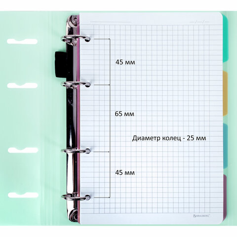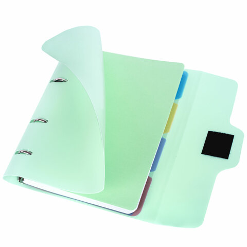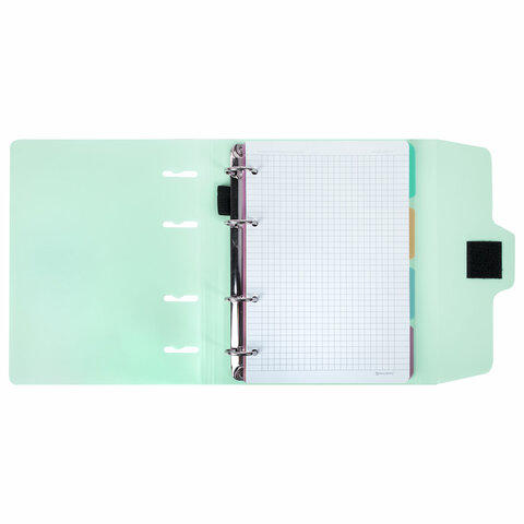 Тетрадь на кольцах А5 175х220 мм, 120 л., пластик, на липучке, с разделителями, BRAUBERG, Мятный, 404638