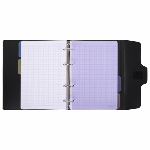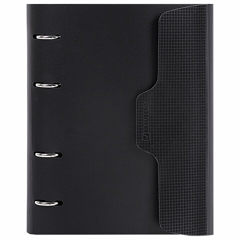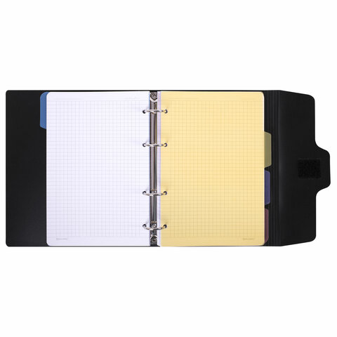 Тетрадь на кольцах А5 175х220 мм, 120 л., пластик, на липучке, с разделителями, BRAUBERG, Черный, 404637