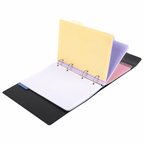 Тетрадь на кольцах с пластиковой обложкой с липучкой станет незаменимым помощником в учебе и работе. Импортный кольцевой механизм позволяет легко сменить внутренний блок.