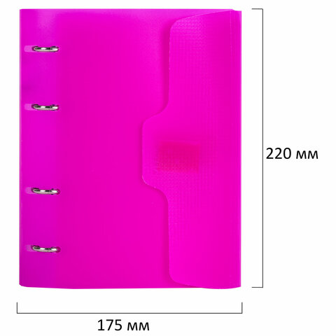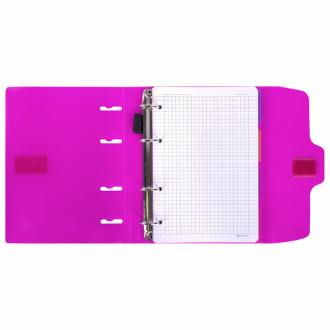 Тетрадь на кольцах А5 175х220 мм, 120 л., пластик, на липучке, с разделителями, BRAUBERG, Розовый, 404635