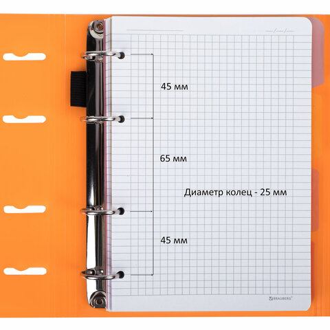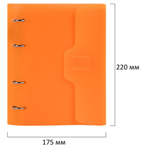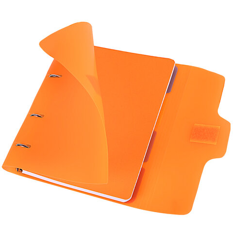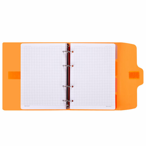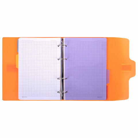 Тетрадь на кольцах А5 175х220 мм, 120 л., пластик, на липучке, с разделителями, BRAUBERG, Оранжевый, 404636
