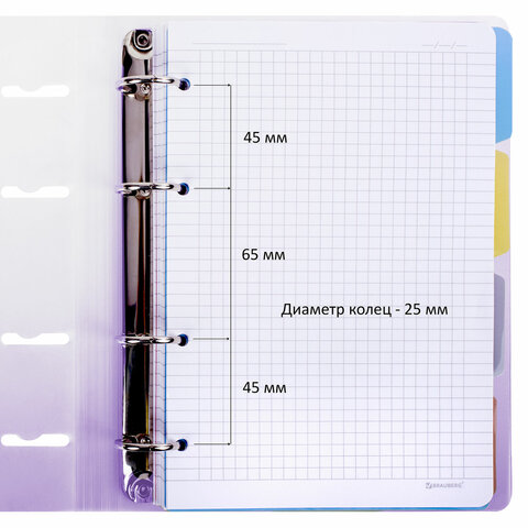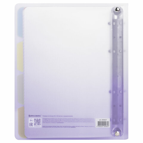 Тетрадь на кольцах А5 175х220 мм, 120 л., пластик, с разделителями, BRAUBERG, Фиолетовый, 404627