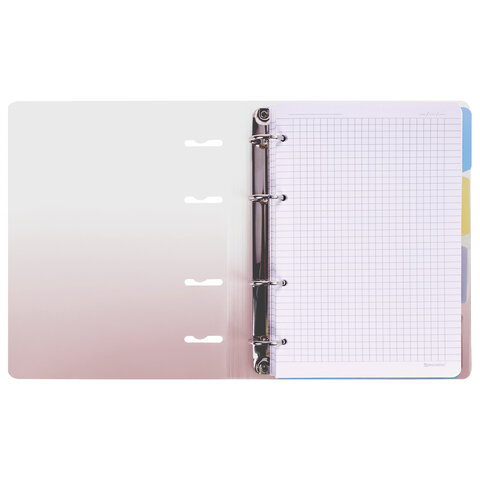 Тетрадь на кольцах с пластиковой градиентной обложкой станет незаменимым помощником в учебе и работе. Импортный кольцевой механизм позволяет легко сменить внутренний блок.