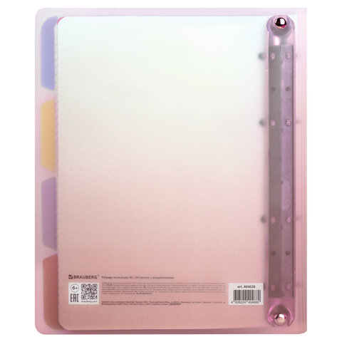 Тетрадь на кольцах А5 175х220 мм, 120 л., пластик, с разделителями, BRAUBERG, Красный, 404630