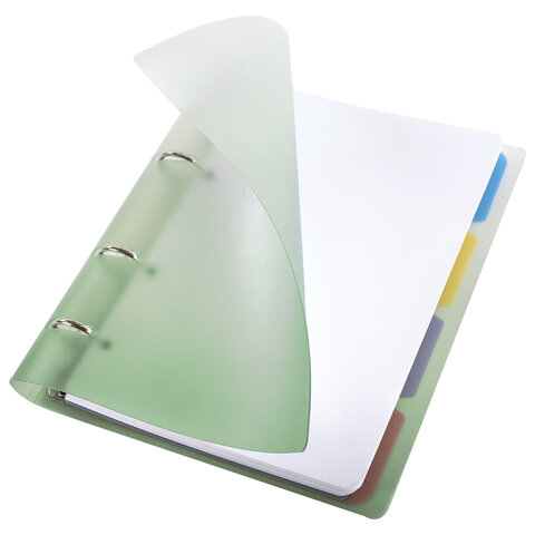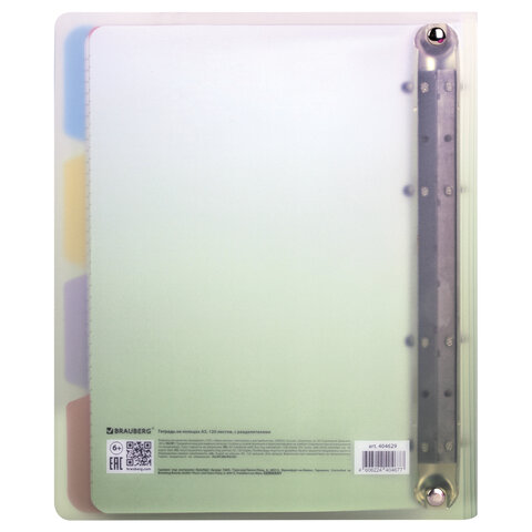 Тетрадь на кольцах А5 175х220 мм, 120 л., пластик, с разделителями, BRAUBERG, Зеленый, 404629