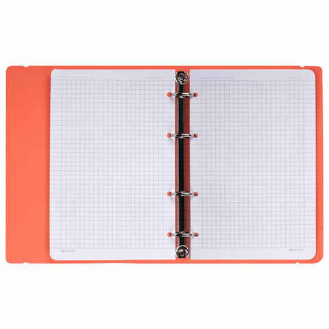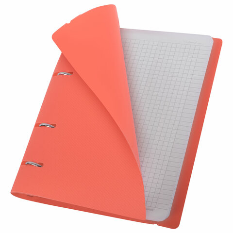 Тетрадь на кольцах А5 175х220 мм, 120 л., пластик, с резинкой, BRAUBERG, Коралловый, 404621