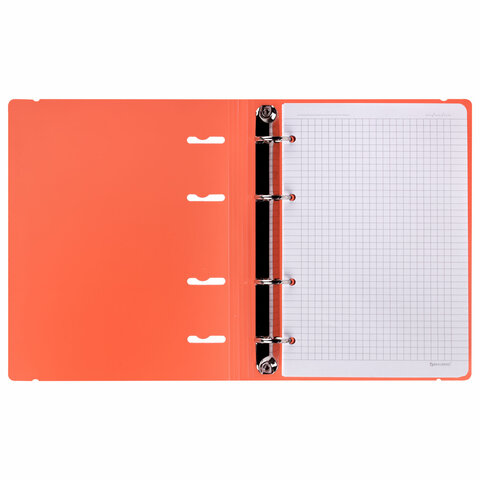 Тетрадь на кольцах с пластиковой обложкой яркого и насыщенного цвета станет незаменимым помощником в учебе и работе. Импортный кольцевой механизм позволяет легко сменить внутренний блок.