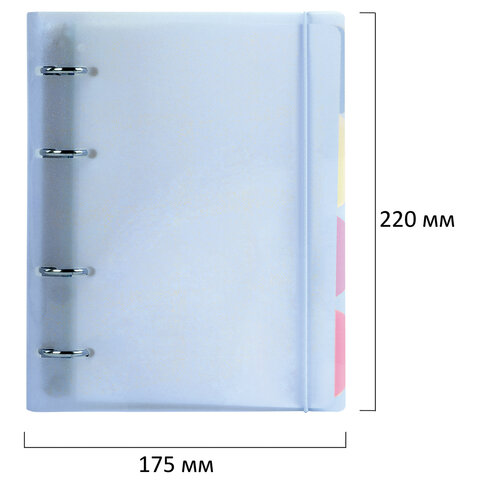 Тетрадь на кольцах А5 175х220 мм, 120 л., пластик с блестками, с резинкой и разделителями, BRAUBERG, Голубой, 404633