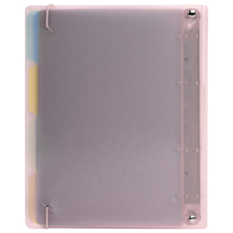 Тетрадь на кольцах А5 175х220 мм, 120 л., пластик с блестками, с резинкой и разделителями, BRAUBERG, Розовый, 404634