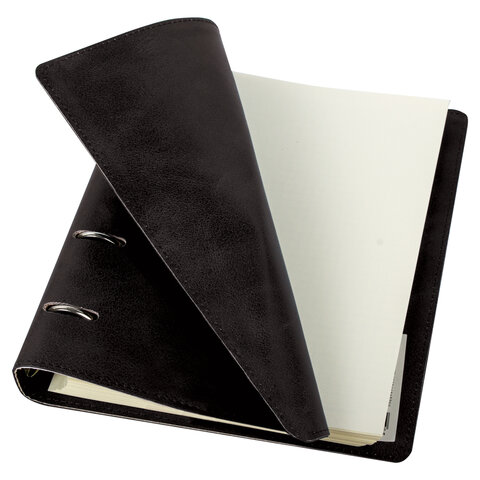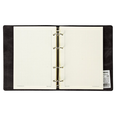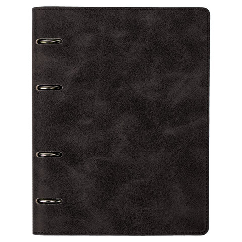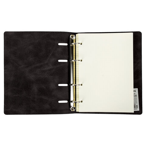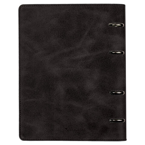 Тетрадь на кольцах А5 (180х220 мм), 120 листов, под кожу, клетка, BRAUBERG "Main", черный, 402004