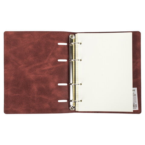 Тетрадь на кольцах А5 (180х220 мм), 120 листов, под кожу, клетка, BRAUBERG "Main", коричневый, 401710
