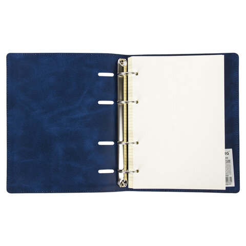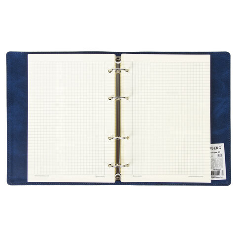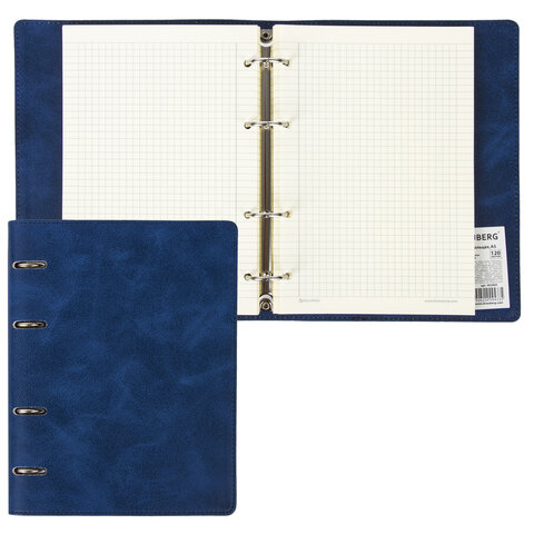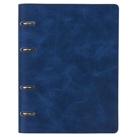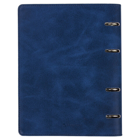 Тетрадь на кольцах А5 (180х220 мм), 120 листов, под кожу, клетка, BRAUBERG "Main", синий, 402005