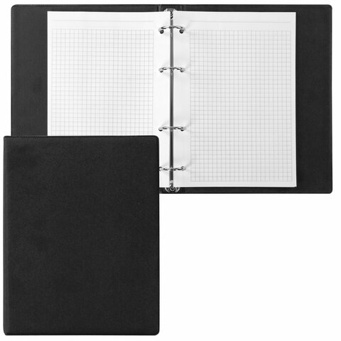 Тетрадь на кольцах А5 (180х220 мм), 80 листов, обложка ПВХ, клетка, BRAUBERG, черный, 403909