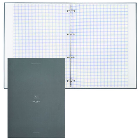 Тетрадь на кольцах БОЛЬШАЯ А4, 220х305 мм, 100 л., твердый картон, клетка, BRAUBERG, "Rhythm", 405407