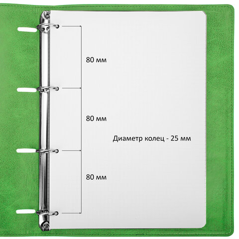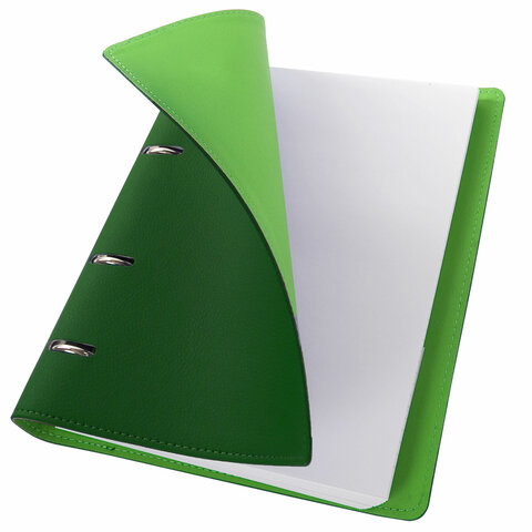 Тетрадь на кольцах БОЛЬШАЯ А4 (240х310 мм), 120 листов, под кожу, клетка, BRAUBERG "Joy", зелёный/светло-зелёный, 404508