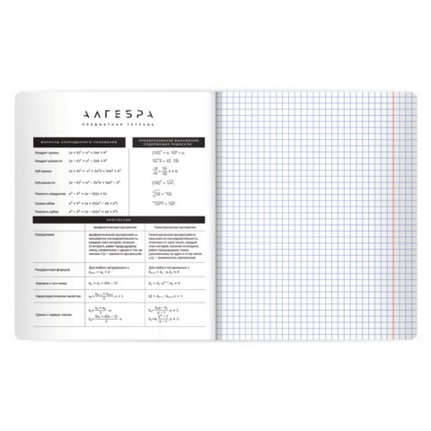 Тетрадь предметная BLACK MODE 48 л., пластиковая обложка, АЛГЕБРА, клетка, подсказ, BRAUBERG, 405514