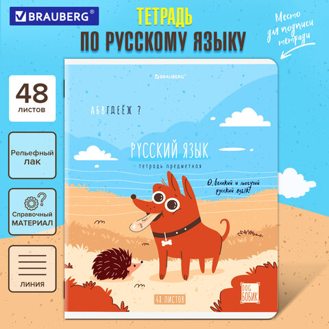 Тетрадь предметная DOG БОБИК 48 л., TWIN-лак, РУССКИЙ ЯЗЫК, линия, подсказ, BRAUBERG, 404791