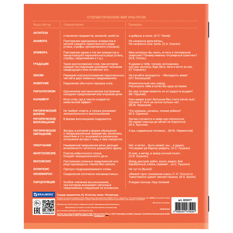 Тетрадь предметная "КОЛОР" 36 л., обложка мелованная бумага, ЛИТЕРАТУРА, линия, BRAUBERG, 405077