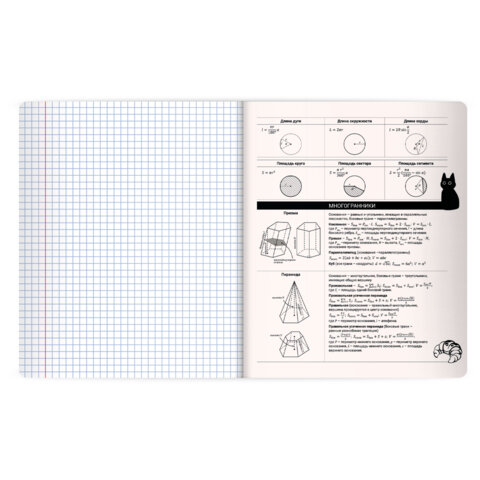 Тетрадь предметная КОТ-НЕПОСЕДА 48 л., пластиковая обложка, ГЕОМЕТРИЯ, клетка, подсказ, BRAUBERG, 405532