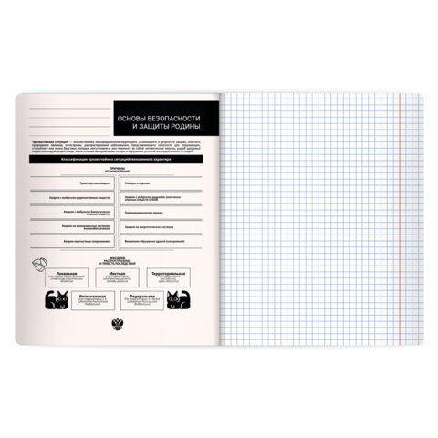 Тетрадь предметная КОТ-НЕПОСЕДА 48 л., пластиковая обложка, ОБЗР, клетка, подсказ, BRAUBERG, 405539