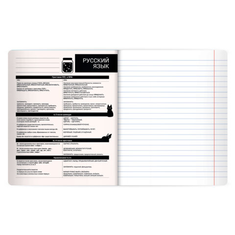 Тетрадь предметная КОТ-НЕПОСЕДА 48 л., пластиковая обложка, РУССКИЙ ЯЗЫК, линия, подсказ, BRAUBERG, 405536