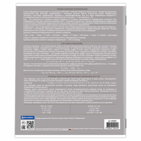 Тетрадь предметная "ЗНАНИЯ" 36 л., обложка мелованная бумага, ИНФОРМАТИКА, клетка, подсказ, BRAUBERG, 404825