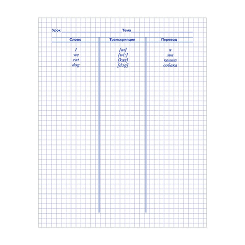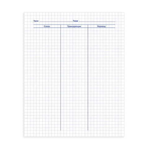 Предназначена для записи изученных слов, их повторения и самопроверки. На первой странице размещен алфавит, последних восьми - грамматический материал. Каждая страница словарика поделена на три части.