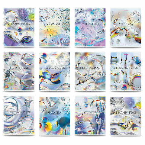 Тетради предметные, КОМПЛЕКТ 12 ПРЕДМЕТОВ, 48 л., глянцевый УФ-лак, BRAUBERG "MAGICAL WHITE", 405168