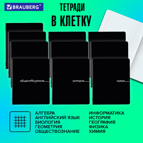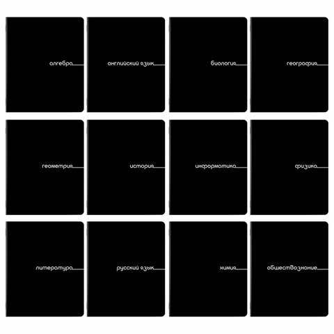 Тетради предметные, КОМПЛЕКТ 12 ПРЕДМЕТОВ, 48 л., обложка картон, BRAUBERG "BLACK", 405164