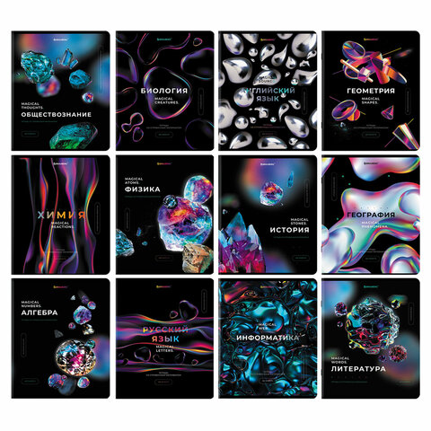 Тетради предметные, КОМПЛЕКТ 12 ПРЕДМЕТОВ, 48 л., глянцевый УФ-лак, BRAUBERG, "MAGICAL", 404610