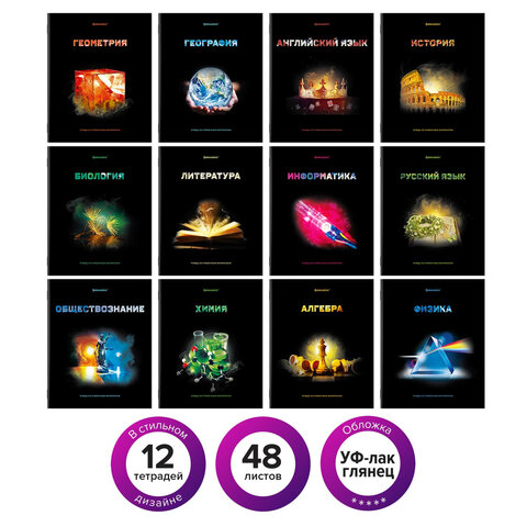 Тетради предметные, КОМПЛЕКТ 12 ПРЕДМЕТОВ, 48 л., глянцевый УФ-лак, BRAUBERG, "SHADE", 404324