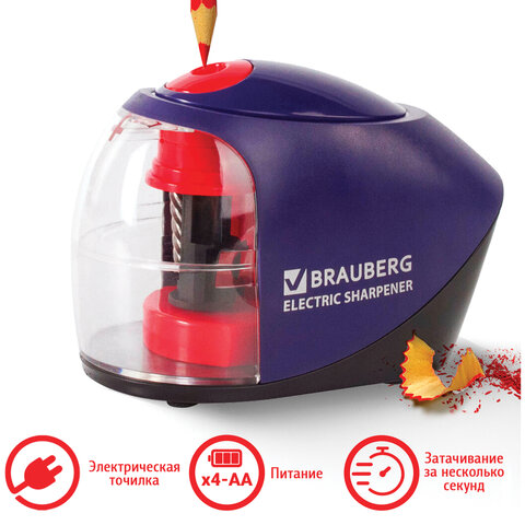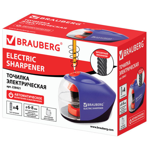 Точилка электрическая BRAUBERG "Delta", питание от 4 батареек АА, спиралевидное лезвие, 228421
