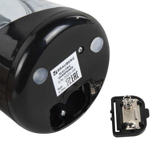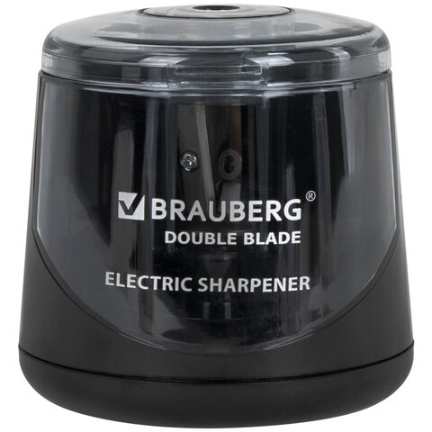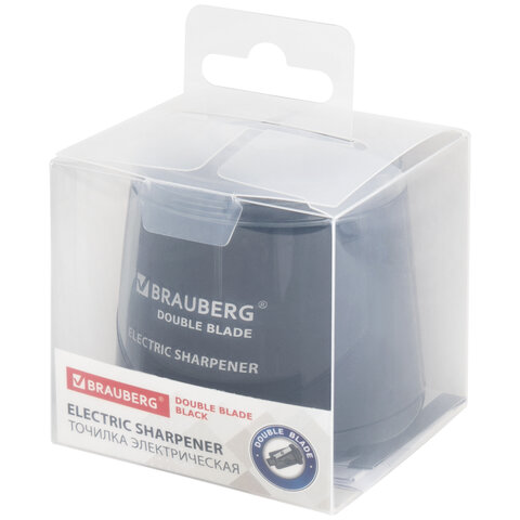 Точилка электрическая BRAUBERG DOUBLE BLADE BLACK, двойное лезвие, питание от 2 батареек АА, 271336