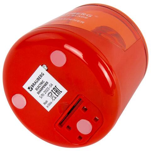 Электрическая точилка BRAUBERG DOUBLE BLADE RED с контейнером для сбора стружки и прямым двойным лезвием работает от 2 батареек АА (в комплект не входят). Предназначена для затачивания деревянных и пластиковых карандашей диаметром 6-8 мм.
