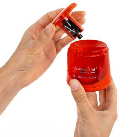 Точилка электрическая BRAUBERG DOUBLE BLADE RED, двойное лезвие, питание от 2 батареек АА, 271338