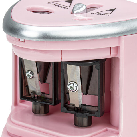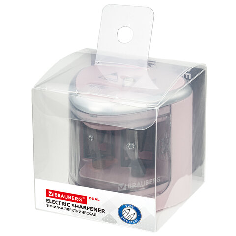 Точилка электрическая BRAUBERG DUAL (для 2 диаметров карандашей!), 4 батарейки АА, розовая, 270579