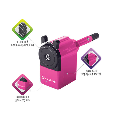 Точилка механическая BRAUBERG "JET", металлический механизм, корпус розовый, 229568