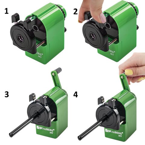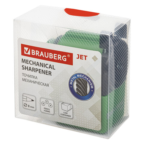 Точилка механическая BRAUBERG "JET", металлический механизм, корпус зеленый, 229571