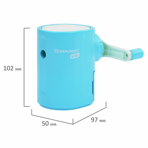 Точилка механическая BRAUBERG KIDS, для простых и цветных карандашей, корпус голубой, крепление к столу, 272005