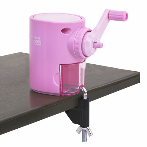 Точилка механическая BRAUBERG KIDS, для простых и цветных карандашей, корпус лавандовый, крепление к столу, 272004