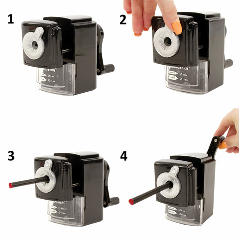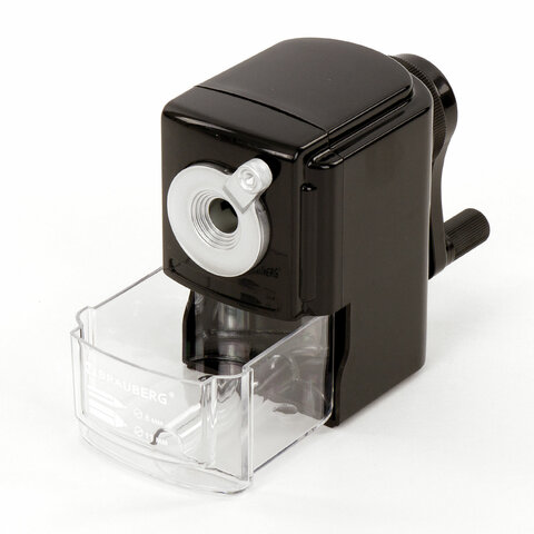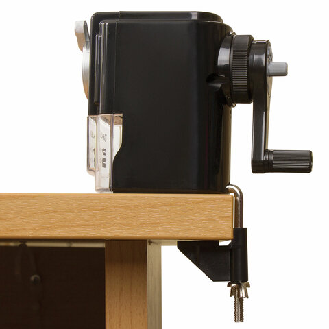 Точилка механическая BRAUBERG "STYLE", для ч/гр и цветных карандашей (в том числе утолщенных), крепление к столу, корпус черный, 228482