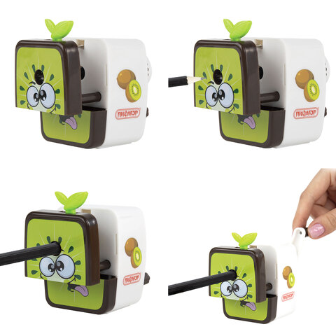 Точилка механическая ПИФАГОР "Киви", корпус белый/салатовый, 270428